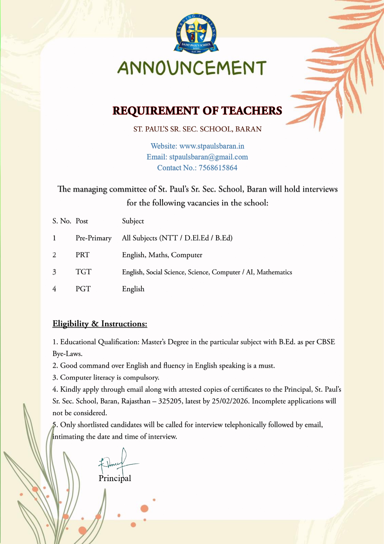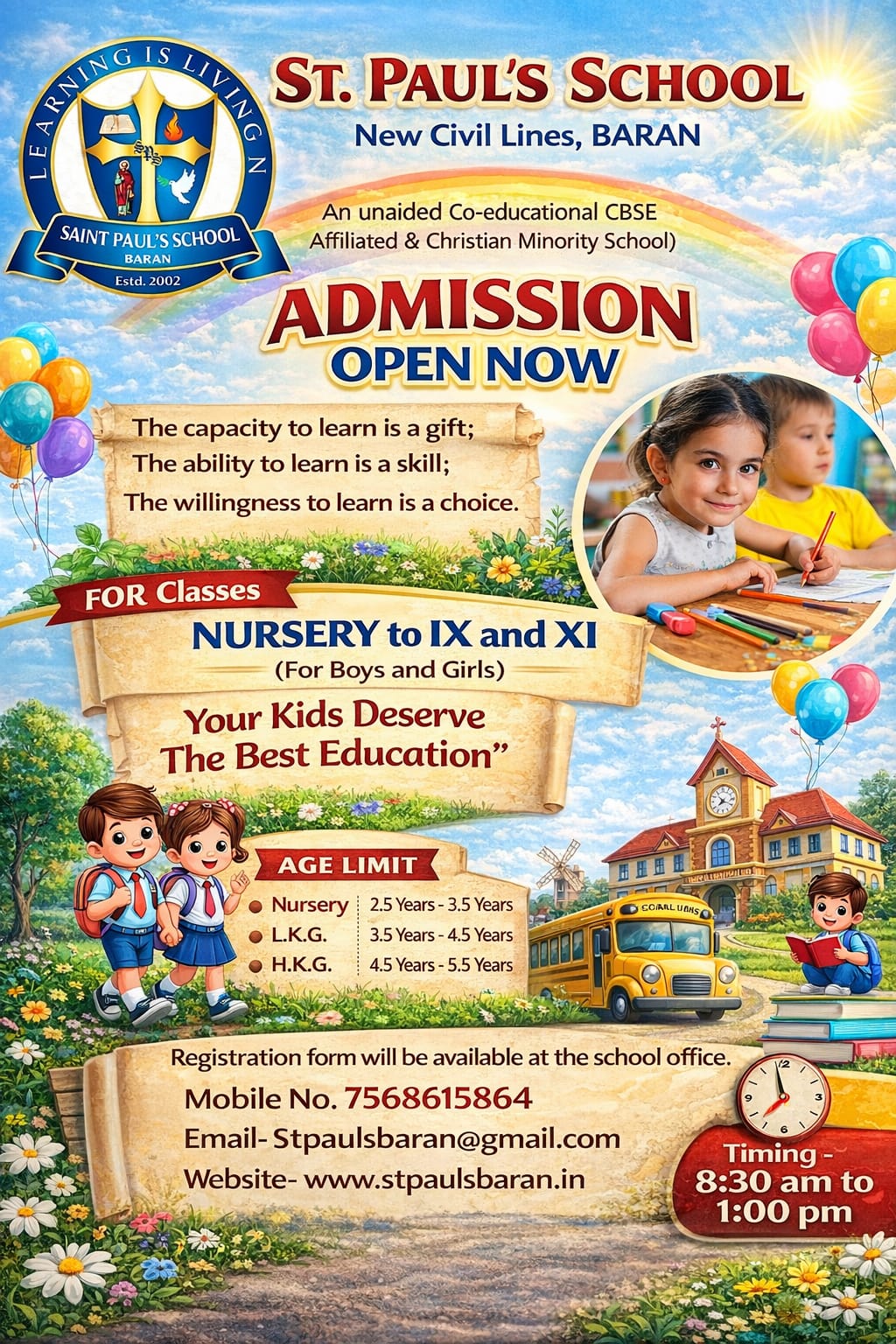 The School aims at providing an all round development of students, i.e. intellectual, moral, physical, emotional development, and to